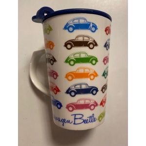 Mok volkswagen kever of Beetle met deksel, ideaal om mee te nemen in de auto bijvoorbeeld