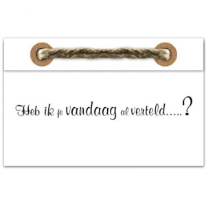 Er zit een minikaartje in die je eruit kunt schuiven en waarop een berichtje geschreven kan worden.