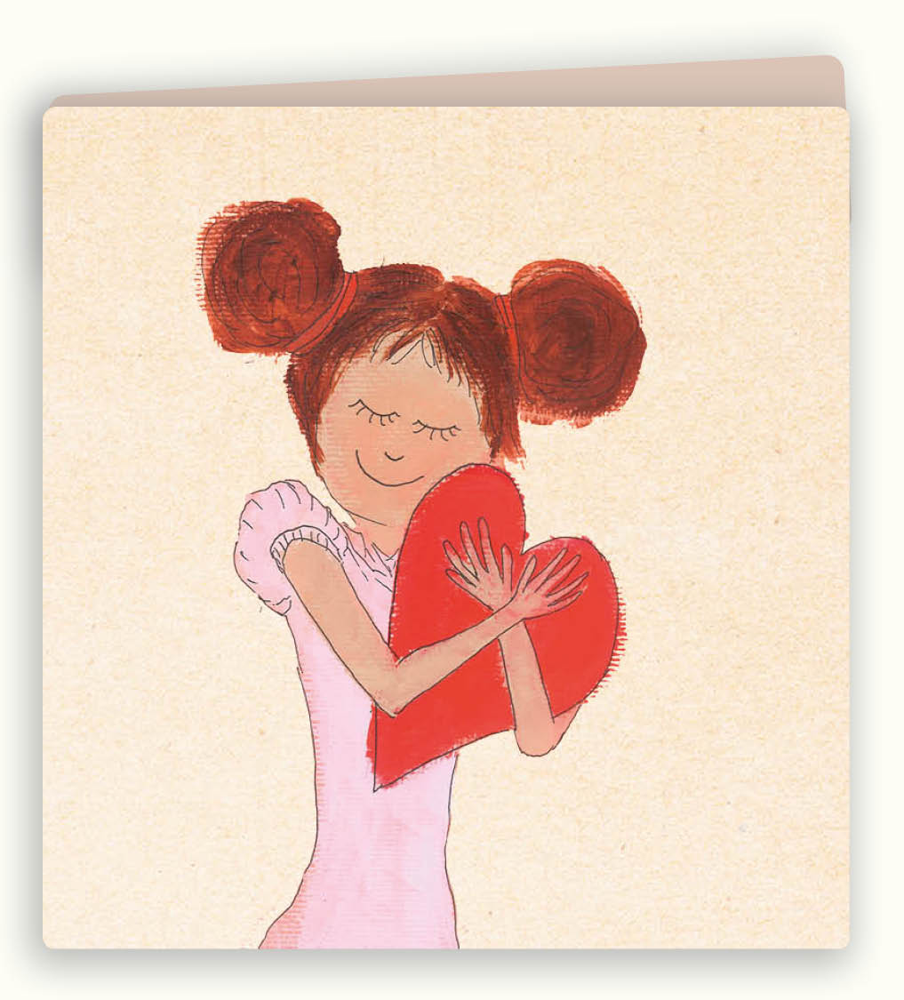 Wenskaart meisje met hart, dubbele kaart en in de binnenkant geen tekst
