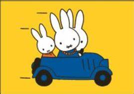 Wenskaart Nijntje in auto, dubbele kaart met envelop. Binnenkant is blanco.