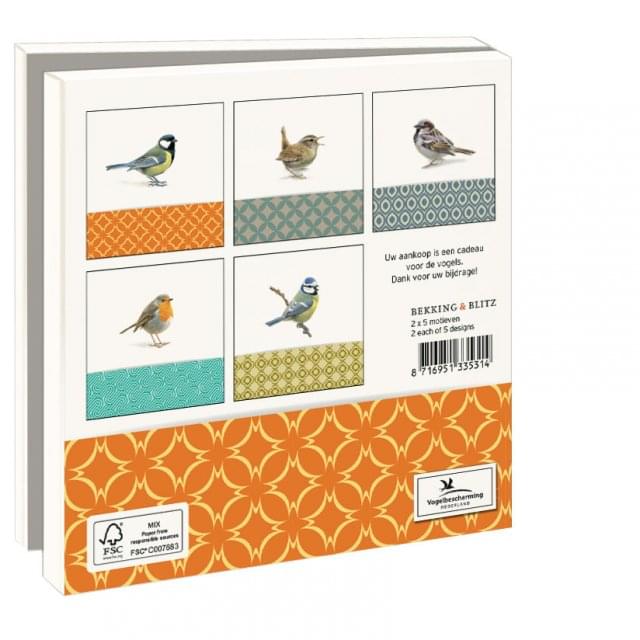 Kaartenmapje vogels, waarbij bijdrage naar vogelbescherming gaat.