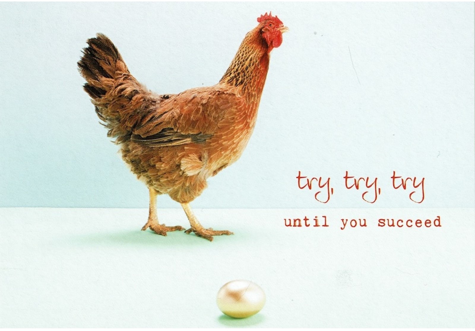 Postkaart try, try, try until you succeed, enkele kaart, zonder envelop
