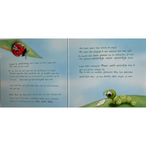 Binnenkant staat een verhaaltje over een rupsje dat verdrietig is, te gebruiken bij een overlijden of iets anders waar kind verdrietig over is.