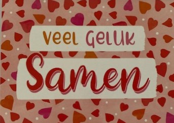 Dubbele kaart met envelop, binnenkant rand ook met hartjes