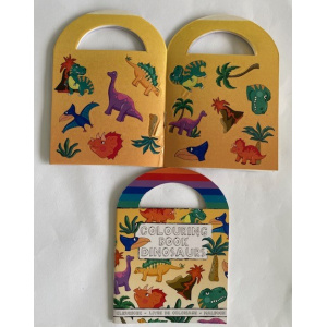Sticker en kleurboekje dinosaurus, met 14 kleine kleurplaatjes en 2 stickervelletjes