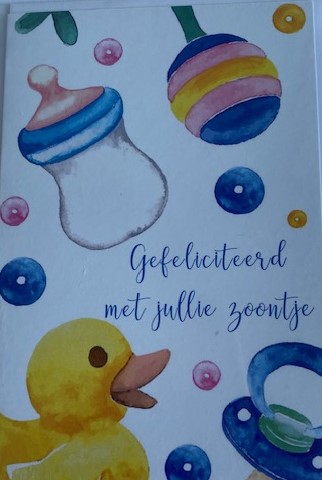 Wenskaart gefeliciteerd met jullie zoontje flesje melk